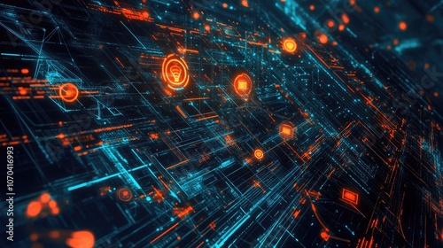 © MAGNIFIER, Obraz premium Network flat design top view theme information technology