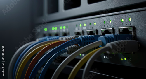 Naklejka premium Network Infrastructure Data Center Server Room Technology Cables Connected