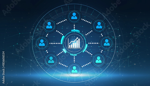 Fototapeta premium Network of Growth: Digital diagram of network, connecting individuals with chart showing financial progress, symbolizing collaboration.