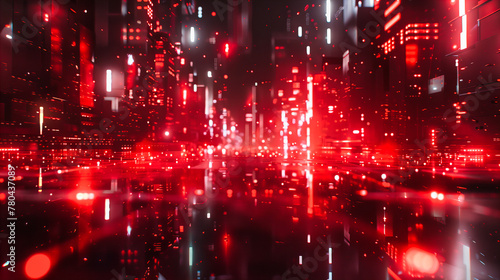 Obraz premium Network of Night, A Fusion of Technology and Urban Glow, The Digital Pulse of a Connected World