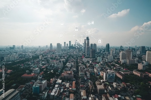 Obraz premium Network of wireless communication and smart cities, IoT (Internet of Things)