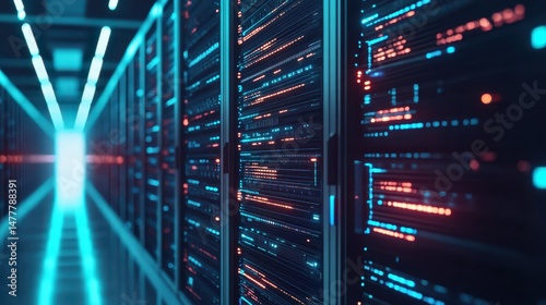 Fototapeta premium Network optimization strategies focus on enhancing performance and reducing latency, featuring dashboards that display performance metrics in a high-tech environment.