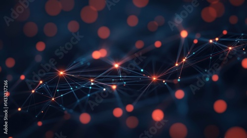 Fototapeta premium Network visualizes data connections using nodes, lines, representing abstract technology and digital innovation.