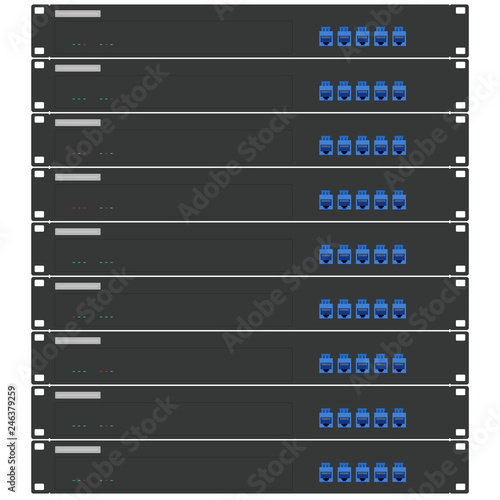 Obraz premium Network workstation server room concept. Server racks