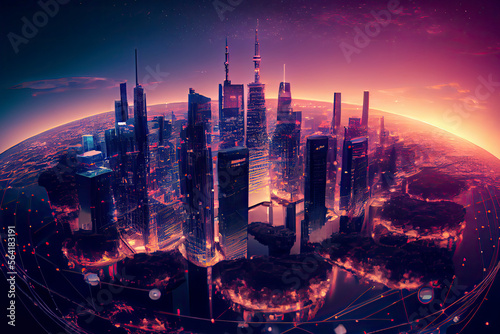 © rufous, Obraz premium Networking technology, augmented reality and smart city