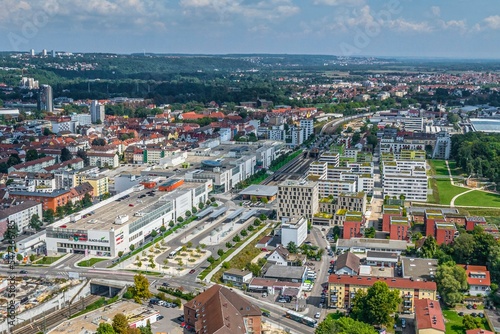 © ARochau, Fototapeta premium Neu-Ulm im Luftbild, Ausblick auf die Glacis-Galerie und den überbauten Bahnhof
