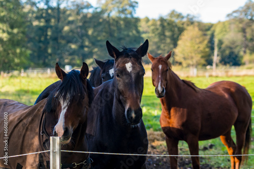 © biggi62, Fototapeta premium Neugierige Pferde stehen vor der Absperrung