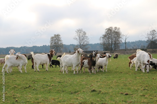 © S. Lorenzen-Mueller, Fototapeta premium Neugierige Ziegen und Heidschnucken