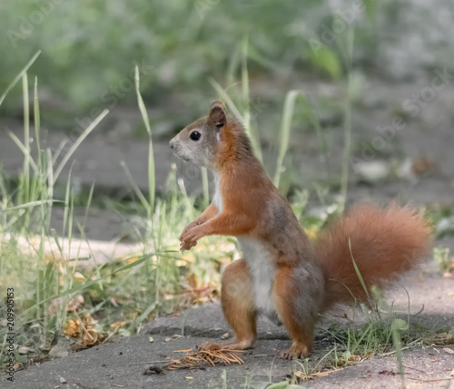 © Micha Trillhaase, Fototapeta premium Neugieriges, stehendes Eichhörnchen
