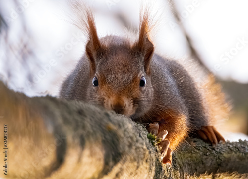 Obraz premium Neugieriges, vorsichtiges Eichhörnchen