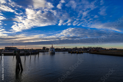 © blende11.photo, Obraz premium Neuharlingersiel Hafenpanorama