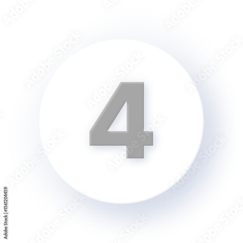 Fototapeta premium Neumorphism Soft Shadow Number 4 Digit Four Numeric Character Typography Math...