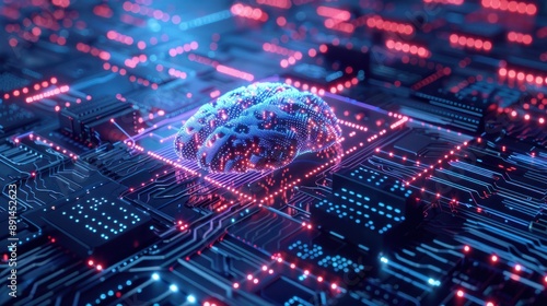 © Johannes, Fototapeta premium Neural circuit and electronic cyber brain in a quantum computing system, artificial intelligence technology, biotechnology and machine learning concept