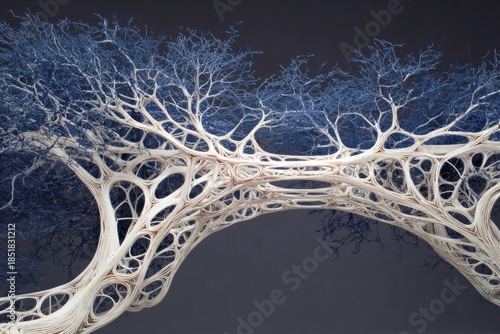 © OhmArt, Naklejka premium Neural connections portrayed as bridges over lymphatic rivers.