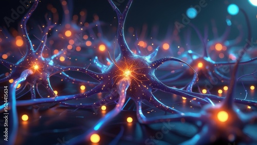 Obraz premium Neural Network Activity with Glowing Brain Connections, High-Resolution...