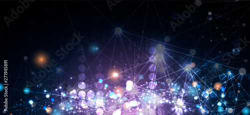 © kras99, Naklejka premium Neural network concept. Connected cells with links. High technology process. Abstract background