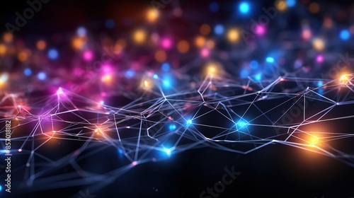 © Nitin, Fototapeta premium Neural network 3D illustration. Big data and cybersecurity. Data stream. Global database and artificial intelligence. Bright, colorful background