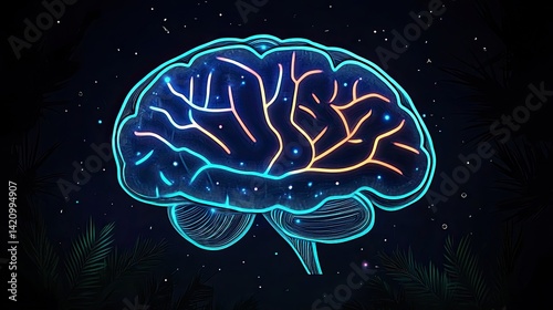 Obraz premium Neural network glow, vibrant brain
