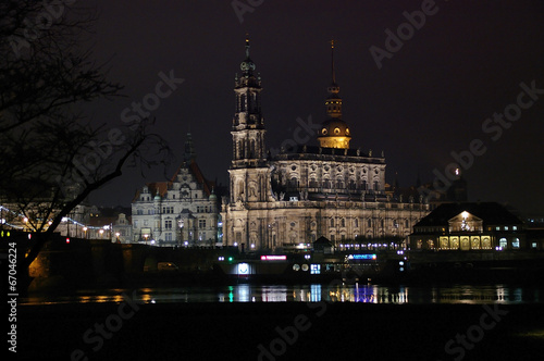 Naklejka premium Neustädter Ufer Dresden bei Nacht