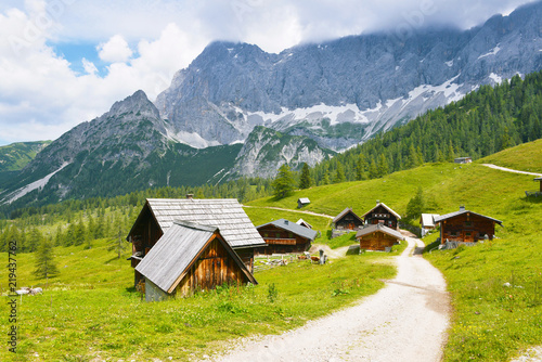 Obraz premium Neustattalm - traditional Austrian mountain village close to Dachstein, Austria.