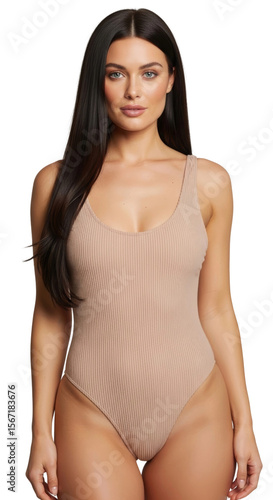 Fototapeta premium Neutral Beige Bodysuit, Woman's Fashion, Isolated on a Transparent Background...