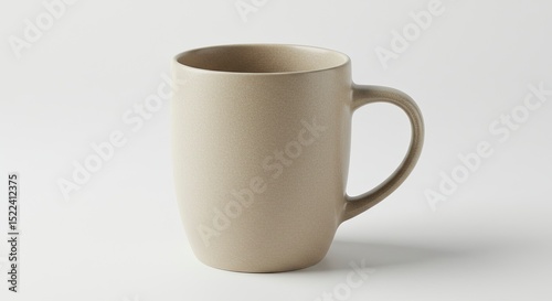 © Fauzi, Obraz premium Neutral Beige Ceramic Mug Isolated On White Background Featuring Textured Surface