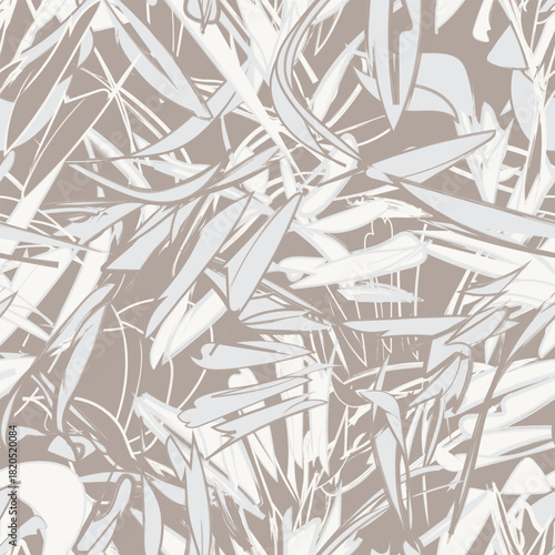 © Siu-Hong Mok, Obraz premium Neutral Colour Leaf Seamless Pattern Design