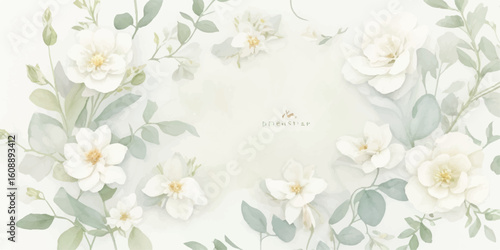 © Muhammad, Fototapeta premium Neutral Floral Watercolor Collection – Ivory Flowers with Butter Yellow Accents and Dusty Green Leaves in Transparent Clipart Set