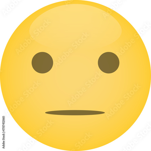 © Odey, Fototapeta premium Neutral Yellow Emoji Face With Brown Eyes and Flat Mouth on Transparent Background Simple Vector Illustration