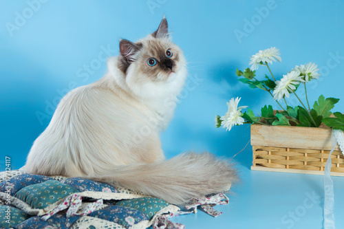 © tania_wild, Fototapeta premium Neva masquerade cat on blue background