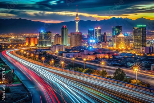 © Adisorn, Obraz premium Nevada Cityscape Skyline at Night - Long Exposure Photography