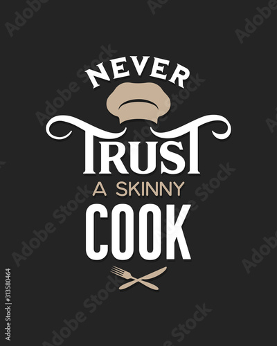 © chelovector, Fototapeta premium Never trust a skinny cook lettering poster. Vector vintage illustration.