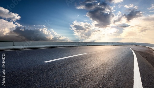 © thomas, Fototapeta premium new asphalt road near up in the history sky and clouds