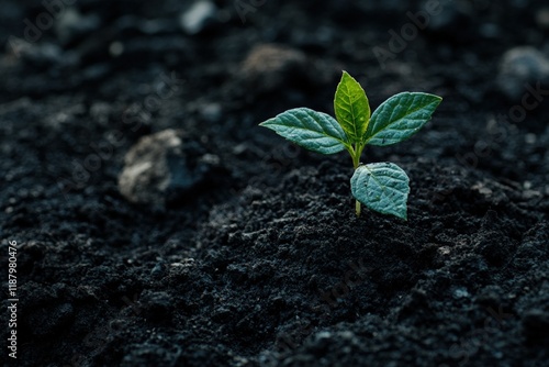 © Woodyphoto, Naklejka premium New beginnings young sapling emerges from rich dark soil nature's resilience earth close-up growth concept