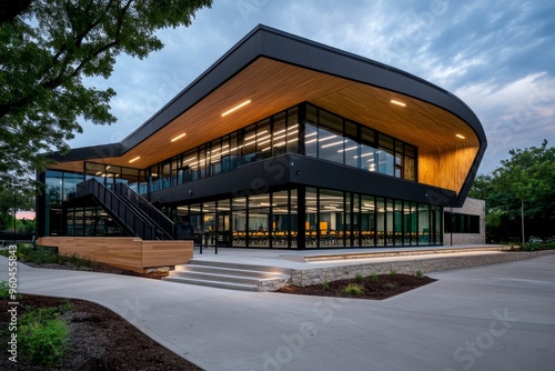 Obraz premium New building, suburban school, modern education spaces supports learning with...