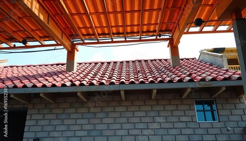 © chanwut, Obraz premium New building under construction, ceramic roof tiles visible, orange, brick