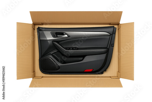 © ArtBox, Fototapeta premium New car door panel in cardboard box delivery