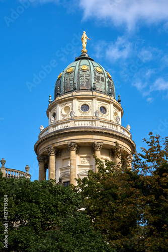 © maxdigi, Fototapeta premium New Church Deutscher Dom Berlin vertical. The New Church also known as the German Church on Gendarmenmarkt square. Berlin, Germany.