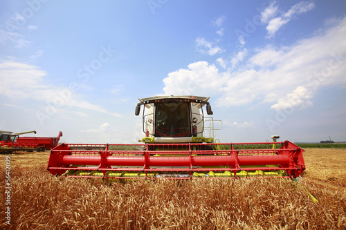 © gzorgz, Fototapeta premium New combine harvester working in a wheat field