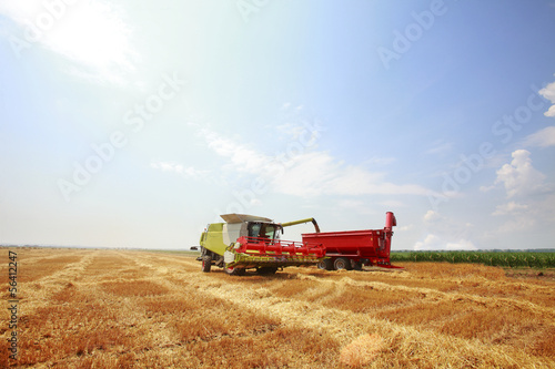 © gzorgz, Obraz premium New combine harvester working in a wheat field