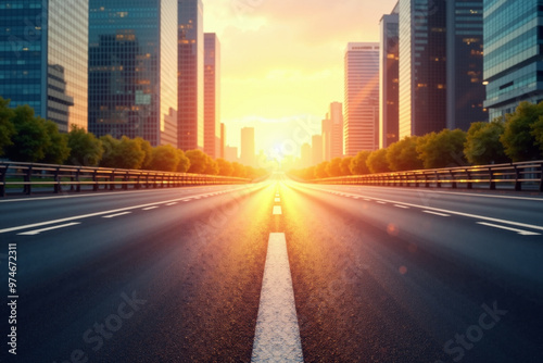 © Flash, Obraz premium new concrete road with city building in background, generative AI