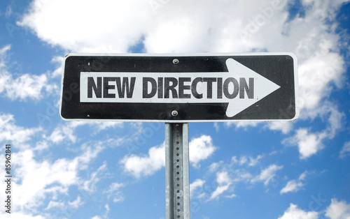 Obraz premium New Direction direction sign with sky background