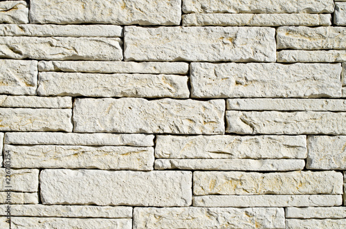 © isabela66, Fototapeta premium New facade decorative tiles on wall imitating stone closeup