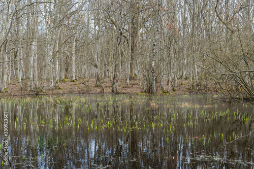 © olandsfokus, Fototapeta premium New green plants in a pond