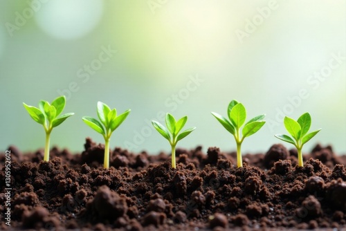 Naklejka premium New growth, thriving seedlings in rich soil, symbolizing environmental...