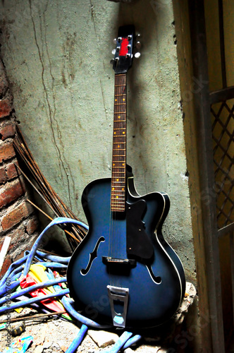 Fototapeta premium New guitar in garbage