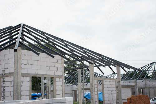 © khemfoto, Obraz premium New home before install new roof tile with other in site,selective focus.