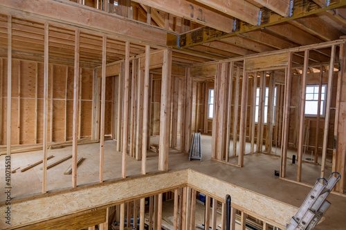 © ungvar, Fototapeta premium New home construction framing of a house under construction