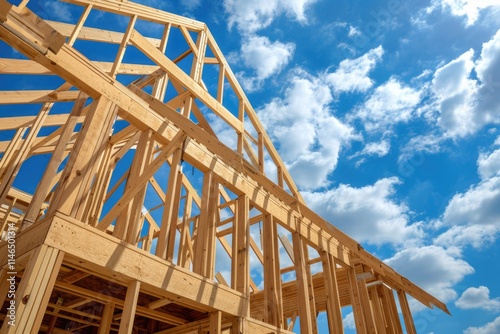 Obraz premium New Home Construction: Framing the Future Against a Blue Sky
