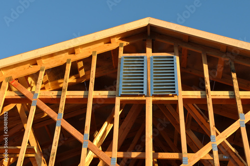 Obraz premium New Home Under Construction with Roof Close Up
